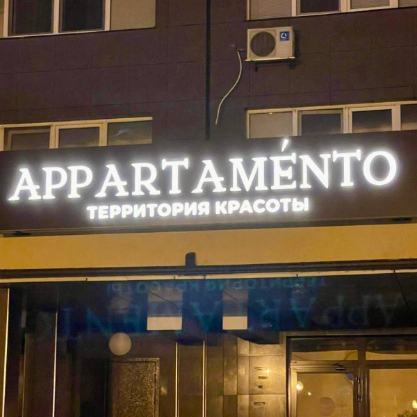 Объемные, световые МетаБуквы без каркаса. Борта МетаБукв выполнены из крашенного металла (не выгорают). Монтаж без каркаса производился в два этапа (вывод проводов + монтаж). Контражурное свечение с температурой 4000К. Светотехника сегмента премиум ELF LED SOL+.