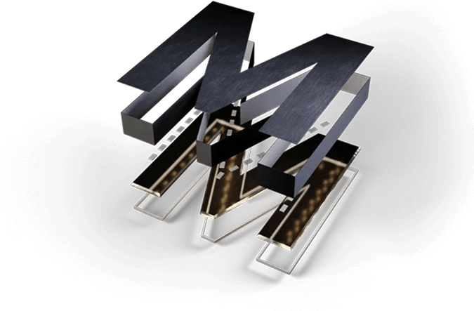 Объединение всех направлений: производство объемных букв, рекламных изделий, услуг фрезерной, лазерной резки, и наличие эксклюзивного листового материала.
